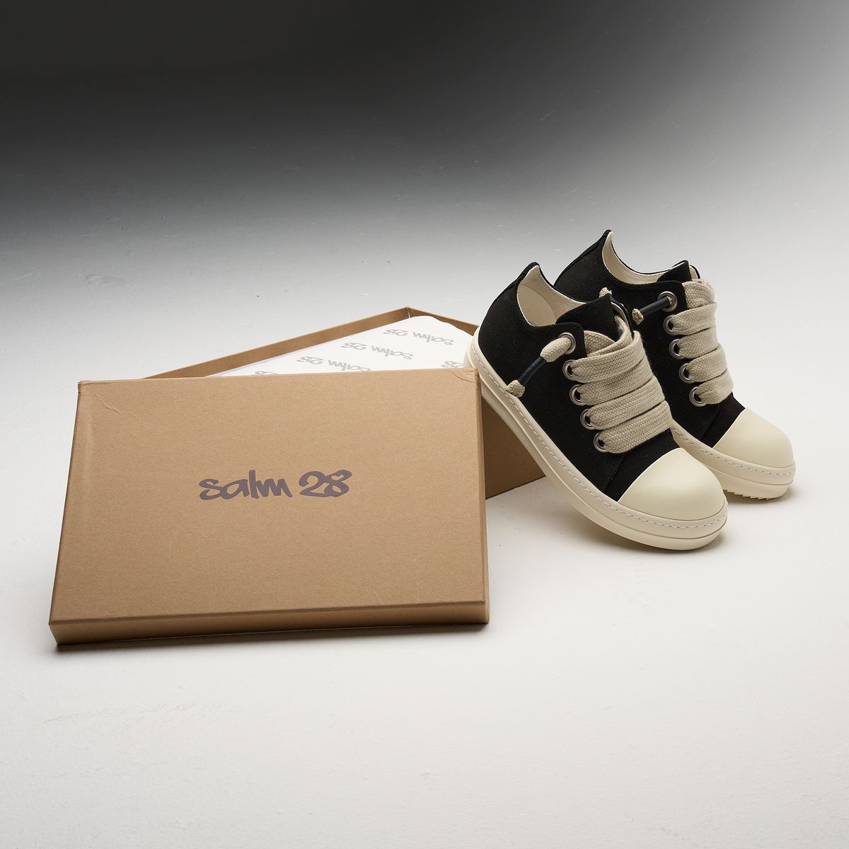 - Oversized rope laces in contrasting ecru, finished with signature metal aglets