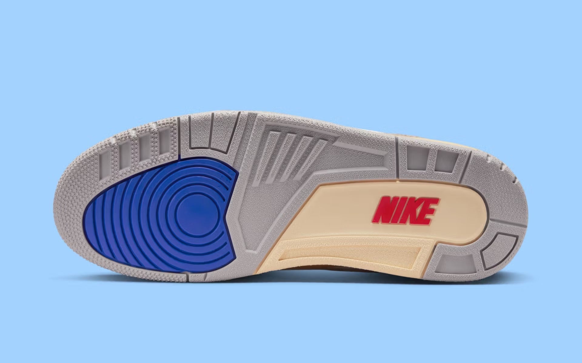 The Air Jordan 3 Retro 'Seoul 2.0' is a sequel of the 2018 design, celebrating the 30th anniversary of the Seoul Olympics. These sneakers have a worn in vintage-looking foam midsole aided by a visible Nike Air heel unit. The white tumbled leather upper is complemented by grey elephant print forefoot and heel overlays. A royal-colored stitched knit collar and a red interior lining add the first touches of contrast. An embroidered Jumpman emblem decorates the right tongue, while the Korean flag adorns the left.